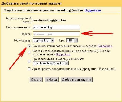 Нажмите раскрывающееся меню после слов «Переслать копию входящей почты на»