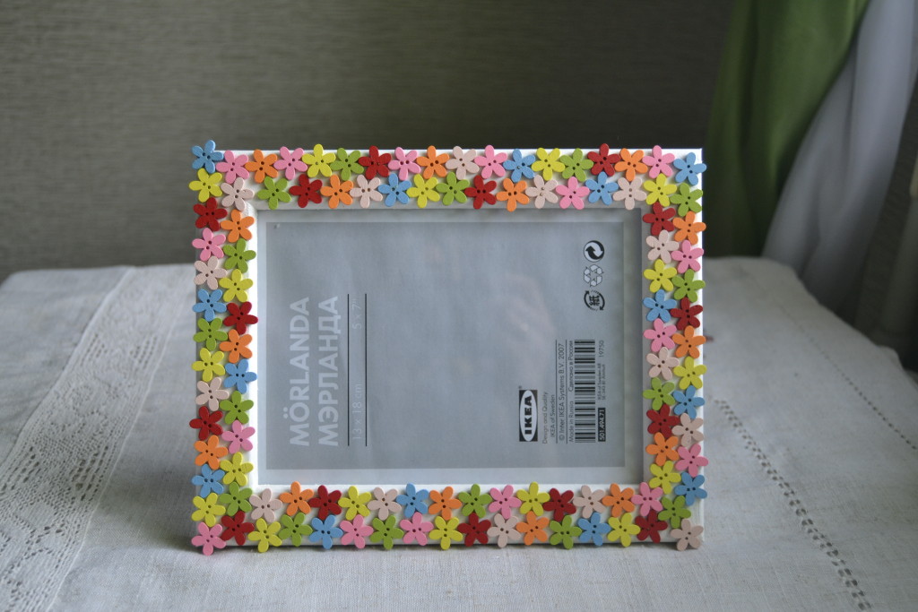 - Пуговицы – с помощью разной формы и размера деталей можно придать рамке любой вид, сделать асимметричные края или орнамент;