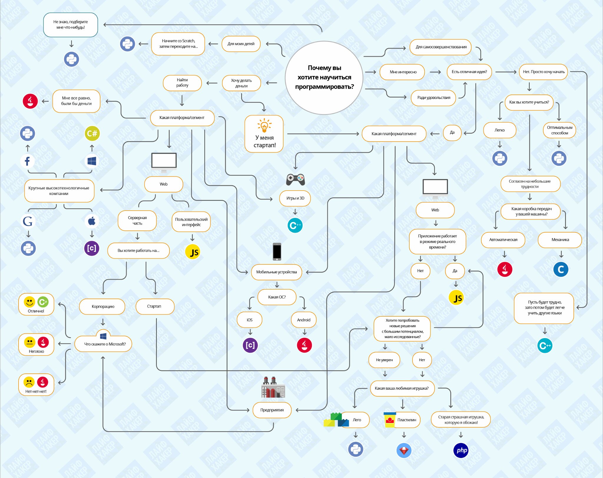- опять же, если не хватает времени / мотивации / опыта / желания или ещё чего-нибудь для написания классического ЯП, попробуйте написать эзотерический, типа Brainfuck. (Советуем помнить, что если язык написан развлечения ради, это не значит, что писать его — тоже сплошное развлечение. — прим. перев.)