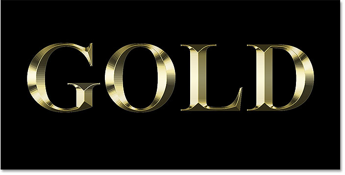 К этому моменту мы закончили со стилями слоя, поэтому нажмите OK, чтобы закрыть диалоговое окно Layer Style. Вот наш золотой текстовый эффект со всеми примененными стилями, включая новый Outer Glow: