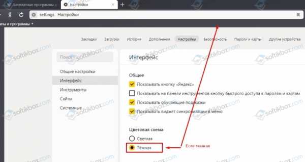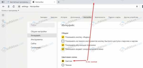 В самом Яндекс.Браузере темы для оформления можно найти, если перейти по адресу: «Меню», «Настройки», «Интерфейс». Далее выбираем «Светлую» или «Темную» цветовые схемы.