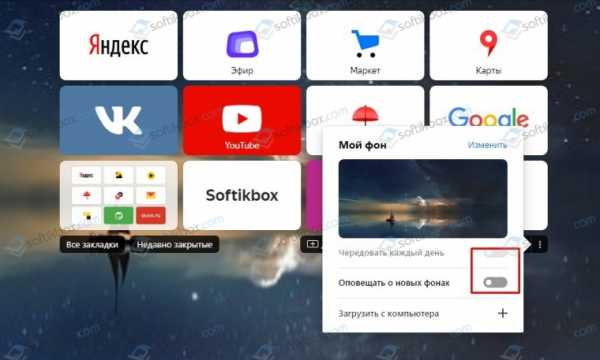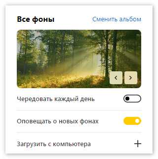 Если у вас есть собственная картинка для оформления обозревателя, то рядом с ползунками по установке различных фонов на каждый день есть кнопка «Загрузить с компьютера».
