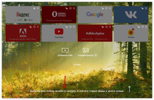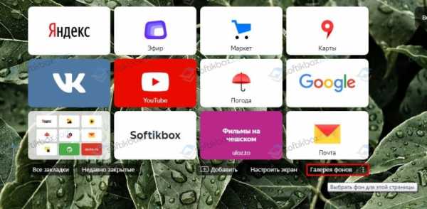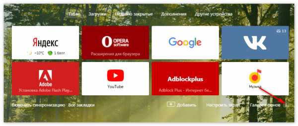 Если же вам нужно поменять сам фон в обозревателе, то нужно перейти на Табло и нажать на кнопку «Галерея фонов».