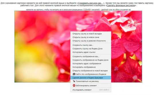В качестве дополнительных инструментов для оформления браузера Яндекс можно использовать картинки с различных веб-ресурсов. Все, что необходимо сделать, чтобы использовать стороннюю картинку в Яндексе, к примеру, Background, это нажать на ней правой кнопкой мыши и выбрать «Сделать фоном в Яндекс.Браузере».