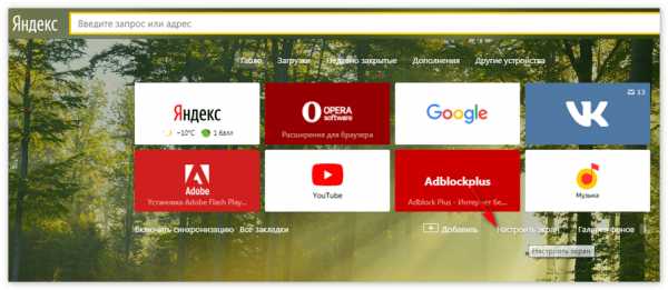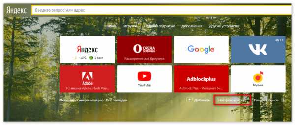 Что же делать? Для начала открываете браузер и находите под окном со ссылкой на часто посещаемые сайты кнопку «Настроить экран».