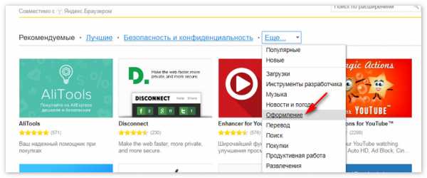 - Горизонтальное меню магазина содержит кнопочку «Еще». Кликнув по ней, выбирайте раздел «Оформление».