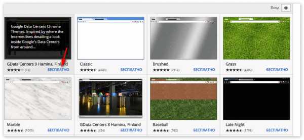 - После выбора раздела откроется целый список темок. Необходимо навести мышь туда, где стоит кнопка «Выбрать» или «Бесплатно».