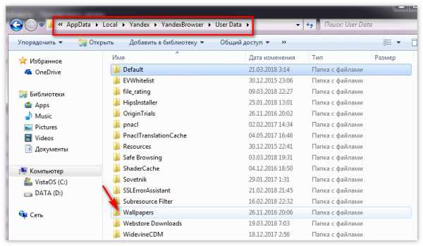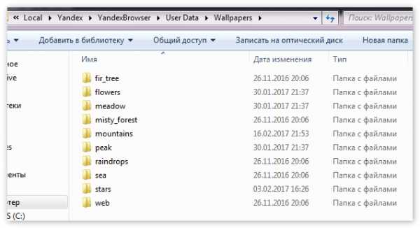 - Перейдите C: Пользователи/AppData/Local/Yandex/YandexBrowser/UserData/Wallpappers.