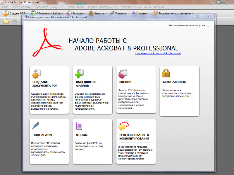 - Доступ к Acrobat с настольных компьютеров, мобильных устройств и интернета