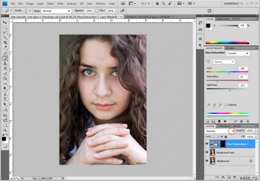 Однако эффект слишком сильный и подавляющий. Вам нужно лучше смешать цвет, уменьшив непрозрачность до цветного слоя. Используйте ползунок на панели слоев , чтобы уменьшить непрозрачность, пока изображение не будет выглядеть правильно.
