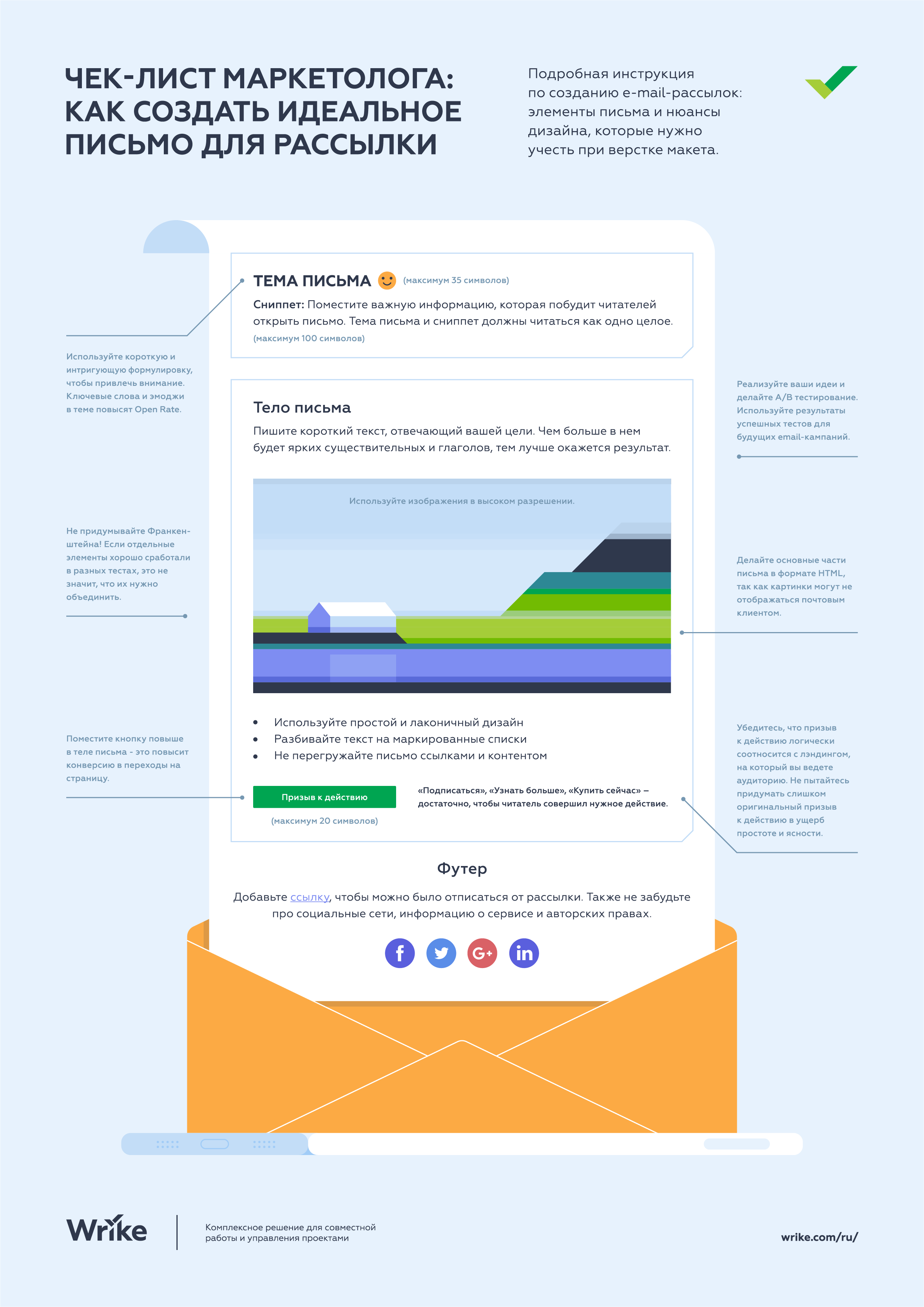 Установите закладку в этом разделе, потому что вам захочется возвращаться к ней каждый раз, когда вы начинаете создавать новый шаблон электронной почты. Мы расскажем о советах и приемах, которые позволят достичь хороших результатов для как можно большего числа ваших или ваших клиентов читателей.
