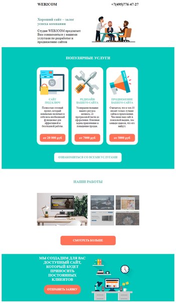 Этим кодом я добавляю строку с одним столбцом, в таблицу «content» и помещаю в него картинку, с надписью «Smartlanding»: