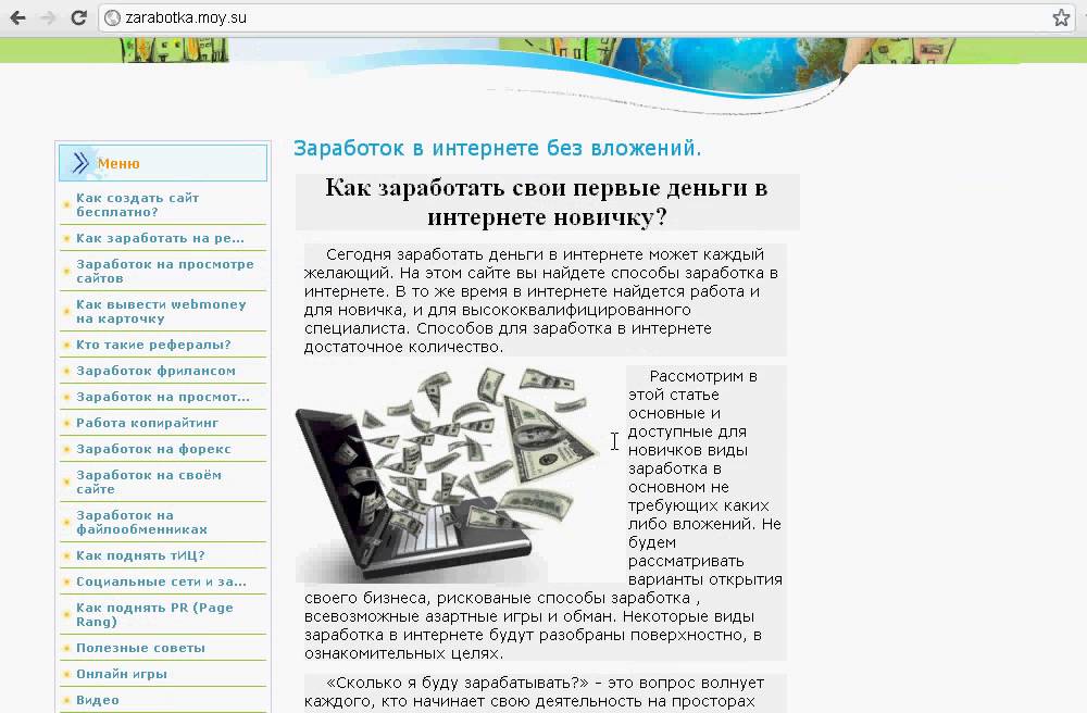 Потребуется ли вам делать авансовые и постоянные инвестиции? Абсолютно. Но вам не обязательно покупать оборудование, офисные помещения, инвентарь, нанимать сотрудников или оплачивать другие дорогостоящие расходы. Есть много способов заработать деньги на веб-сайте, не выходя из собственного дома, имея только компьютер.