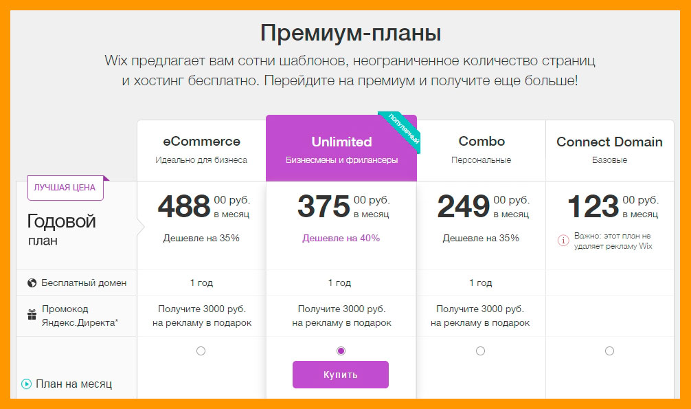 Если вы выберете бесплатный тарифный план, вы не сможете получить доступ к поддержке Wix.