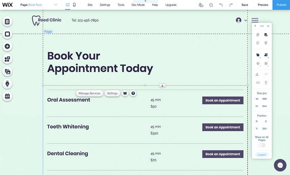 Правая панель инструментов изменяется в зависимости от того, какой элемент вы выбрали на странице, но в целом она обеспечивает точное управление. Хотите выровнять изображение? Изменить размер текста, чтобы он соответствовал контейнеру? Дублировать пункт меню? Повернуть заголовок? Вы можете сделать все это здесь.