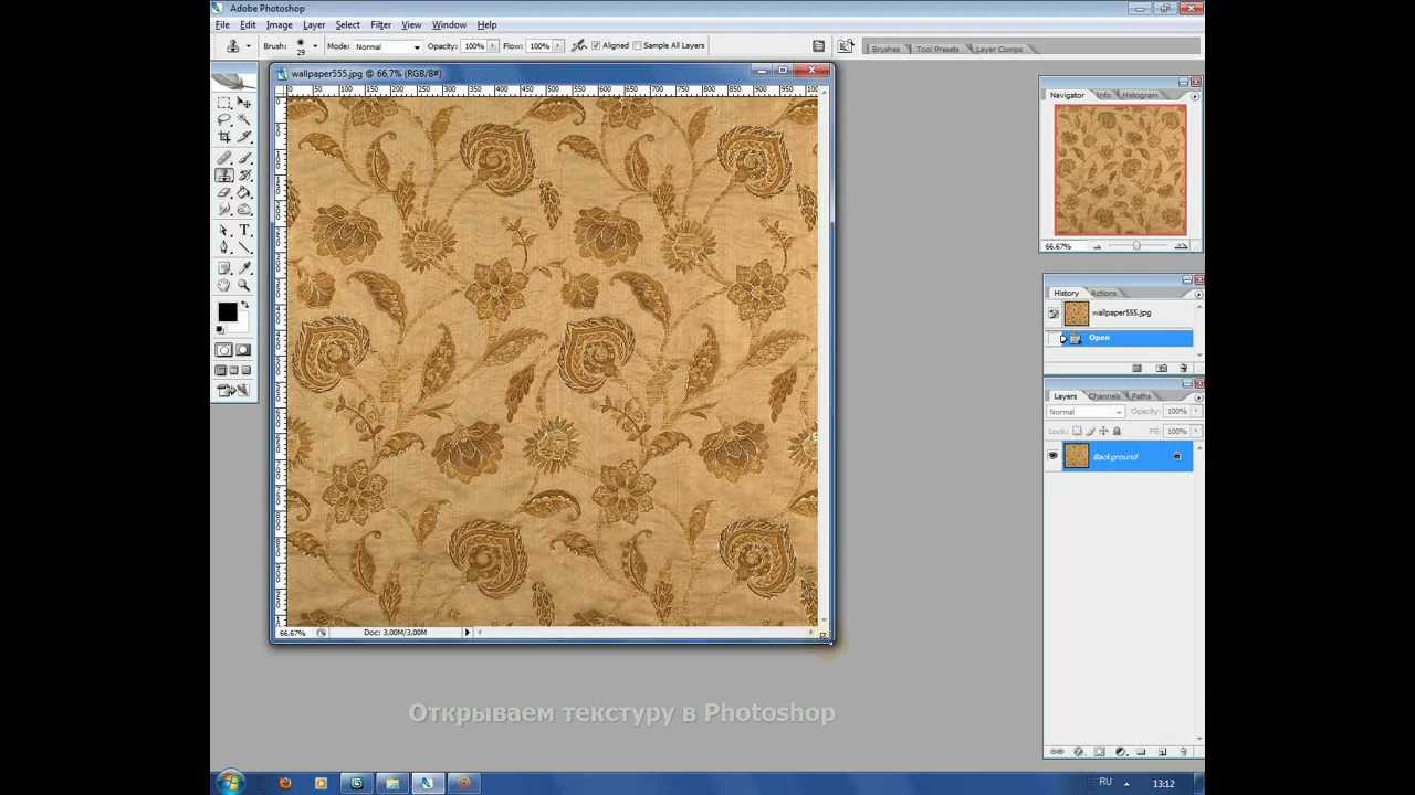Для начала нужно затайтлить нашу текстуру, для этого откроем Фотошоп (я использую CS3 версию, но эти, же действия можно выполнить и на более ранних версиях) и загрузим в него нашу фотографию. Есть много вариантов затайтлить изображение, я остановлюсь на самом простом. Запустим фильтр “Сдвиг” Filter->Other->Offset: