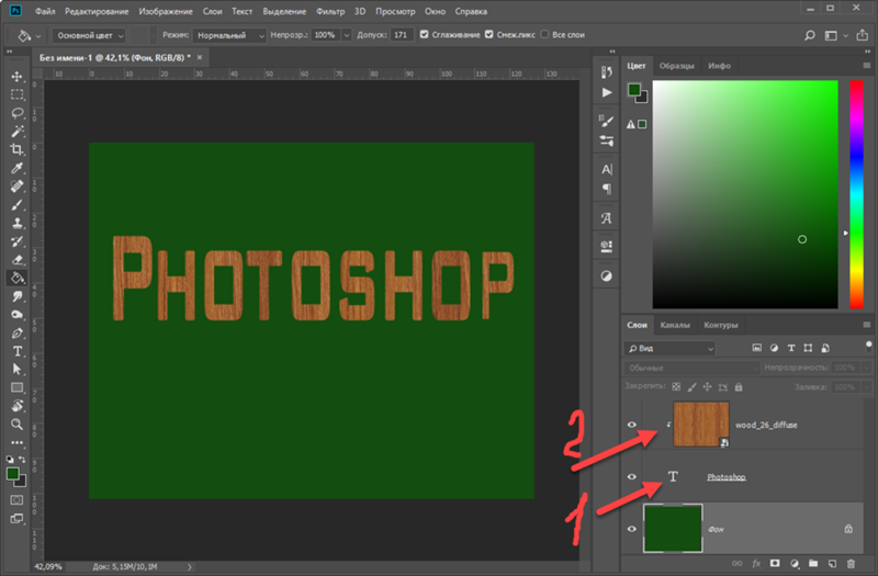 Например, если текстура внутри текста расположена не так, как вы хотите, вы можете переместить слой, чтобы он лучше заполнил текст.