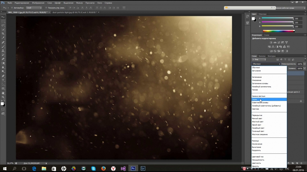 5) Сразу слева от индикатора непрозрачности вы увидите раскрывающееся меню. Это для выбора режима наложения, который определяет, как текстура сливается с основной фотографией. Попробуйте несколько вариантов, пока не найдете тот, который вам нравится больше всего. Ниже я выбрал режим наложения Hard Light, который усиливает как тени, так и блики слоя с текстурой.