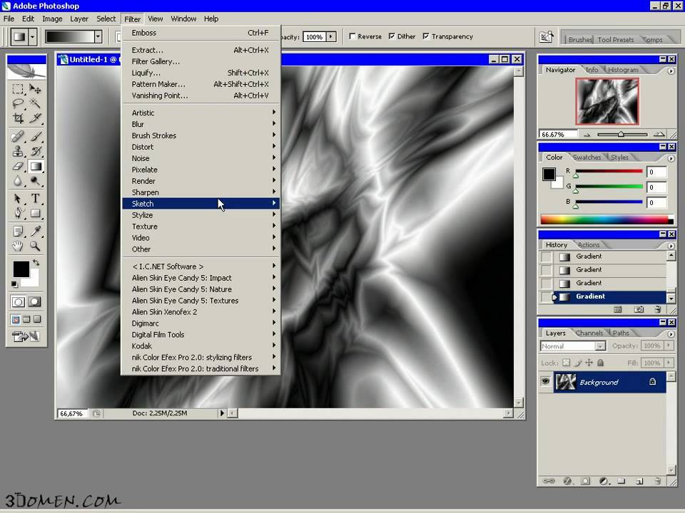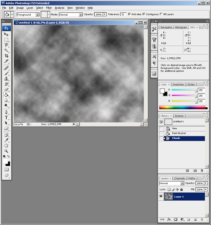 Указав этот слой, с которым мы собираемся работать, вы должны убедиться, что цвет фона и переднего плана черный и белый. Если нет, измените их через мгновение, и теперь мы собираемся применить облачный фильтр к этому слою.