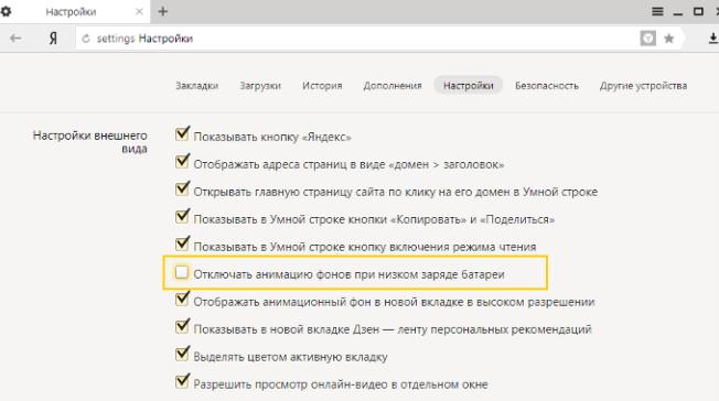 Анимация воспроизводится по умолчанию в высоком разрешении. Если это замедляет работу Яндекс Браузера, установите стандартное качество анимации: