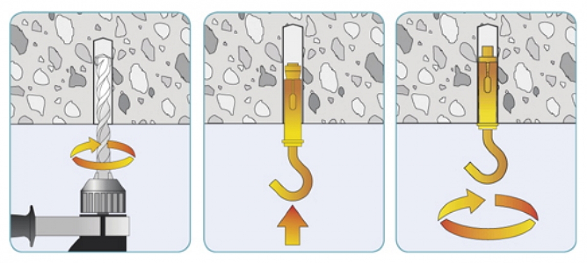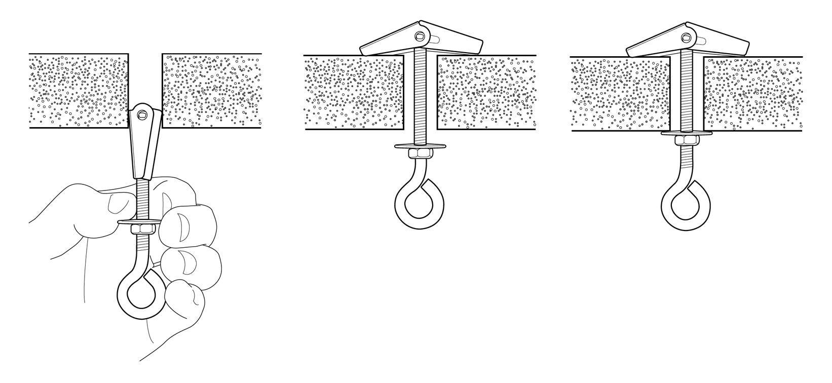 Возьми свой потолочный крюк и вкрутите его в отверстие, где был ваш штифт. Потяните вниз, чтобы проверить прочность.
