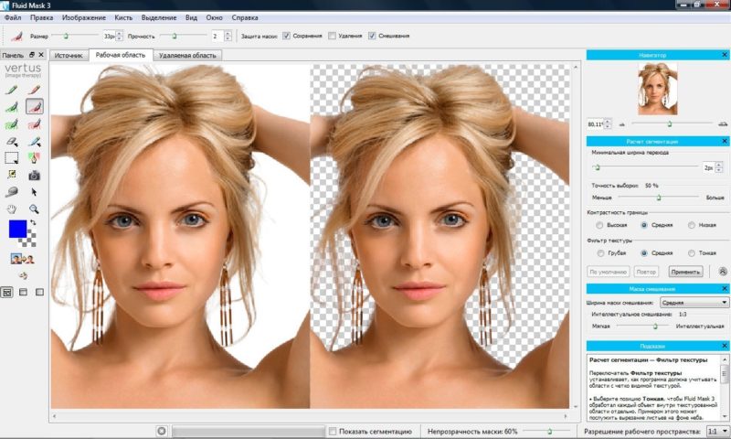 Принципом работы Clipping Magic схож с Фотошопом Онлайн, но при этом он обладает более продвинутыми алгоритмами обнаружения границ сохраняемых объектов. Убрать задний фон на фото онлайн с его помощью очень просто. Зеленым маркером объект обводится изнутри, красным – снаружи, по фону вдоль внешних границ. Сами границы при этом определяются автоматически, в случае же необходимости их можно подкорректировать, воспользовавшись ластиком.