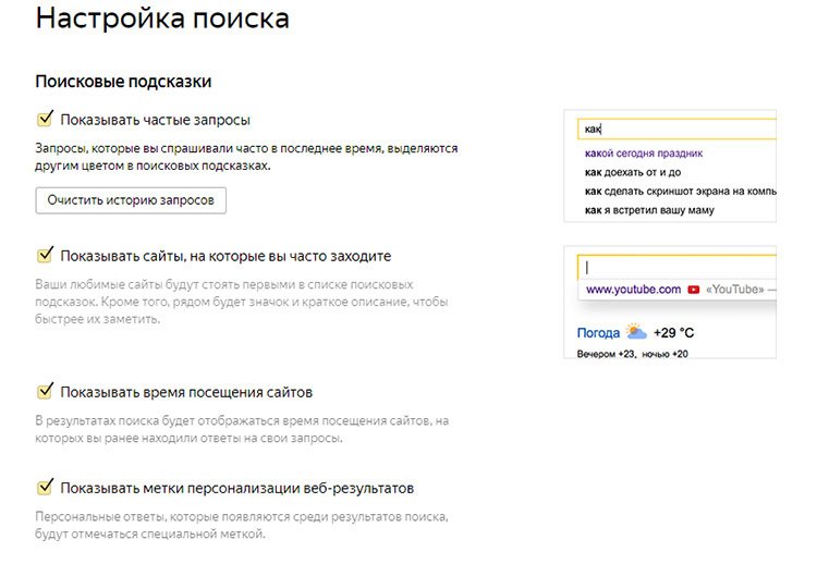 Глобальное очищение истории поиска посредством настроек Яндекса