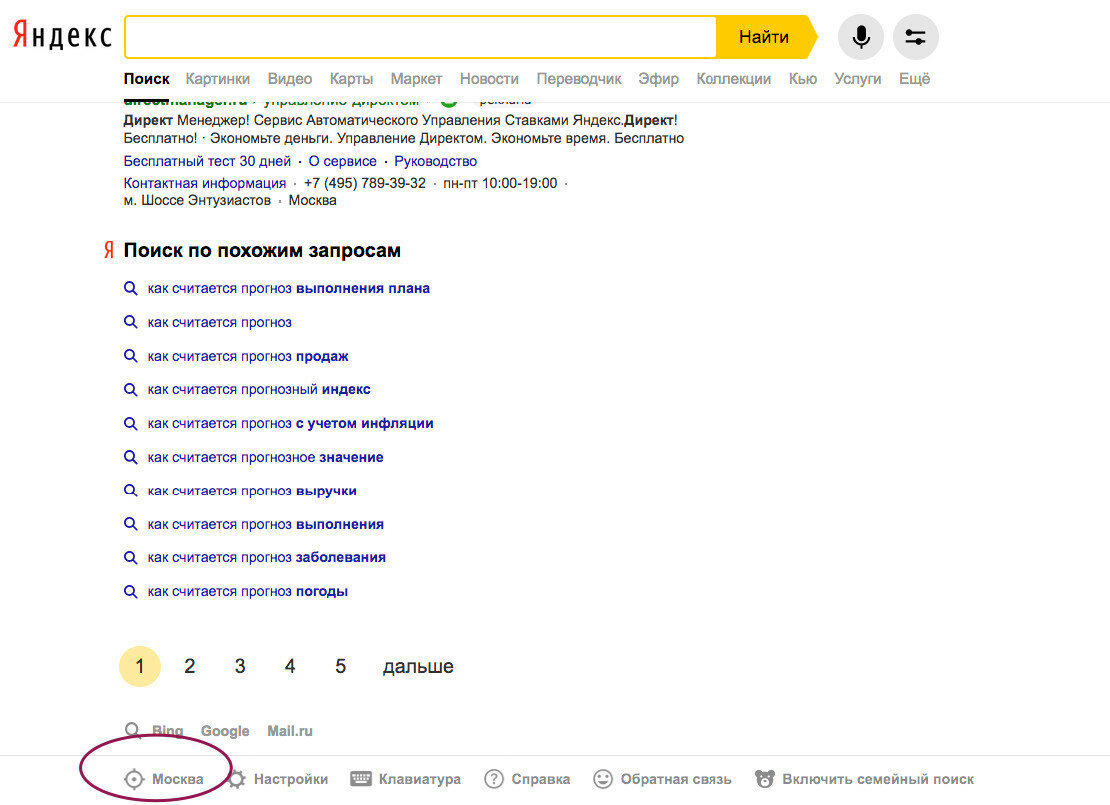 Некоторые удобные сервисы в Яндексе напрямую связаны с определением нахождения пользователя. Это Погода, контекстная реклама и общие результаты поиска. Некоторые запросы называют геозависимыми – на их позицию в выдаче как раз и влияет заданное значение региона/города.