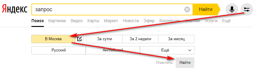 - Сразу под строкой поиска в выдаче появится значок «Расширенный поиск». Нажмите на него.