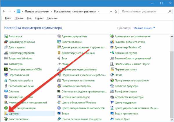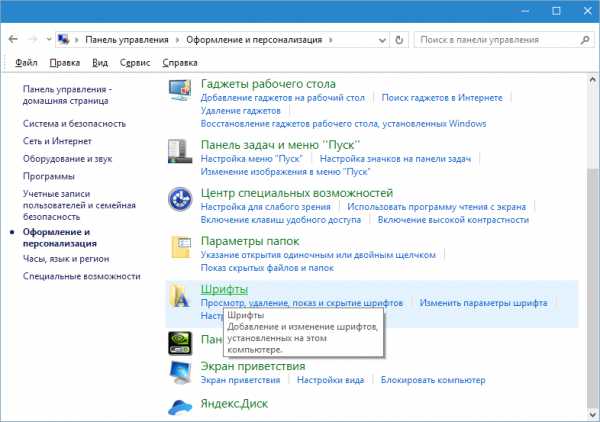 - Пуск→ Панель управления → Оформление и персонализация → Шрифты.
