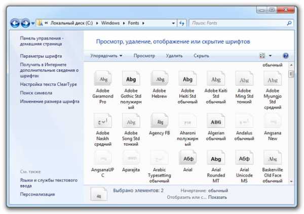 В ОС Windows библиотека шрифтов находится в папке Fonts, в которую можно попасть двумя способами. По пути: