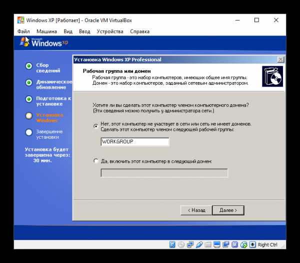- Шаг с настройкой рабочей группы или домена можно пропустить.