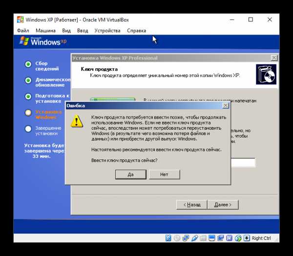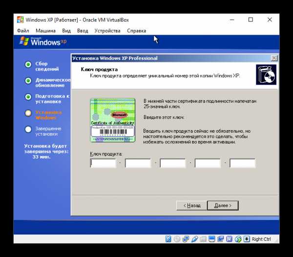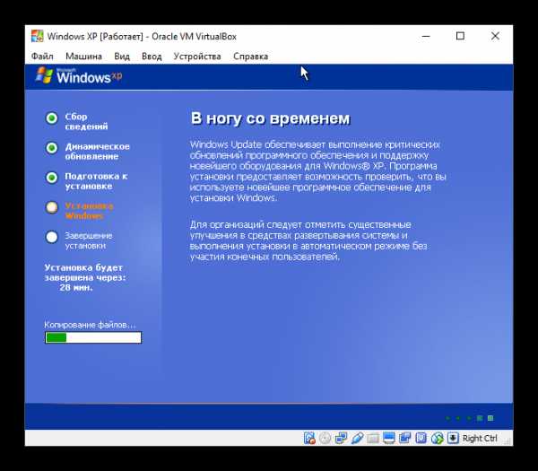 Установка Windows XP на VirtualBox очень проста и не занимает много времени. При этом пользователю нет необходимости искать драйвера, совместимые с компонентами ПК, как это было бы необходимо делать при обычной установке Windows XP.