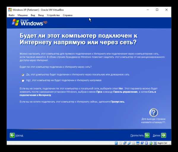 - Выберите, будет ли компьютер подключен к интернету напрямую.