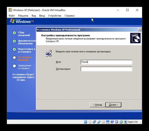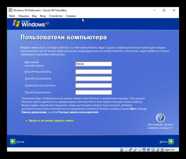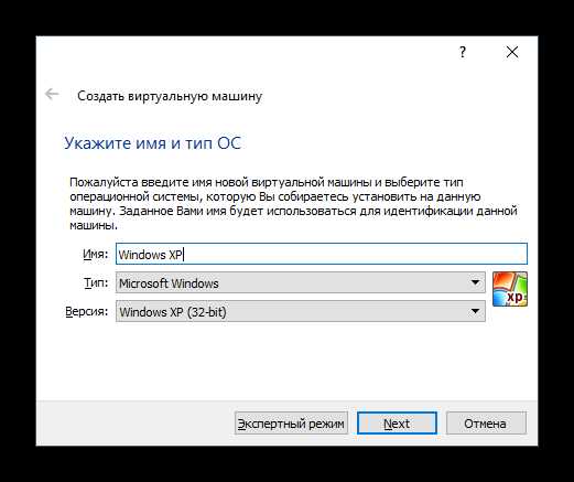 - В поле «Имя» впишите «Windows XP» — остальные поля будут заполнены автоматически.