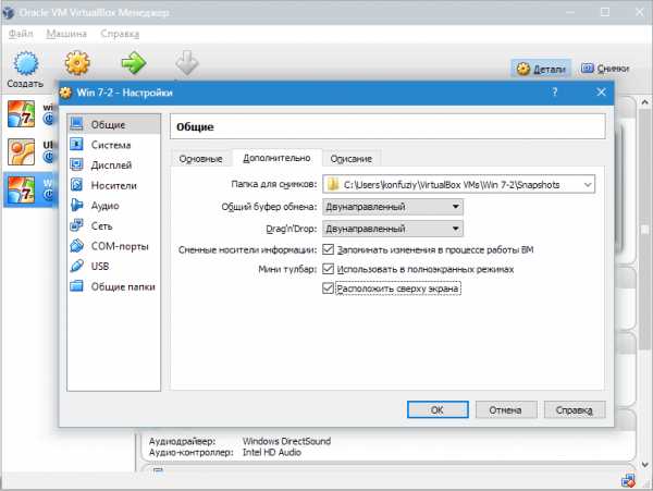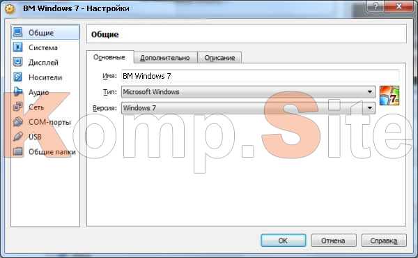 Прочие настройки приведены в справочном разделе. Они тесно связаны с конфигурацией железа вашего компьютера. Если установить настройки, не согласующиеся с ней, запуск ВМ не сможет состояться.