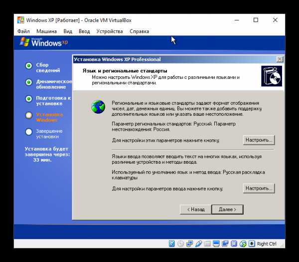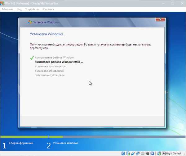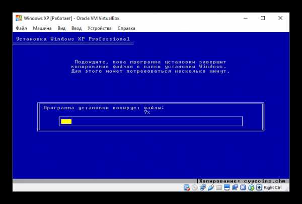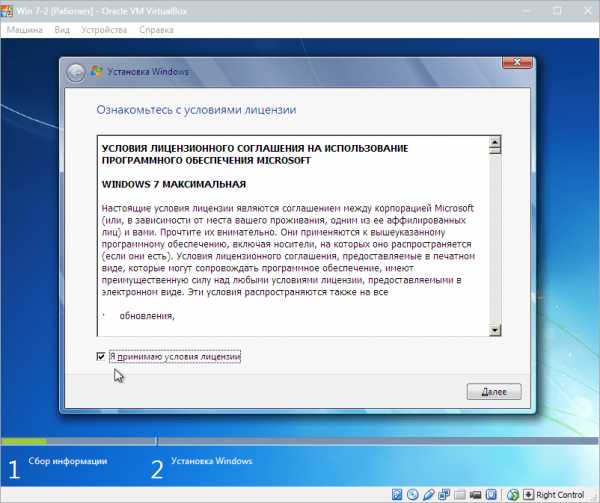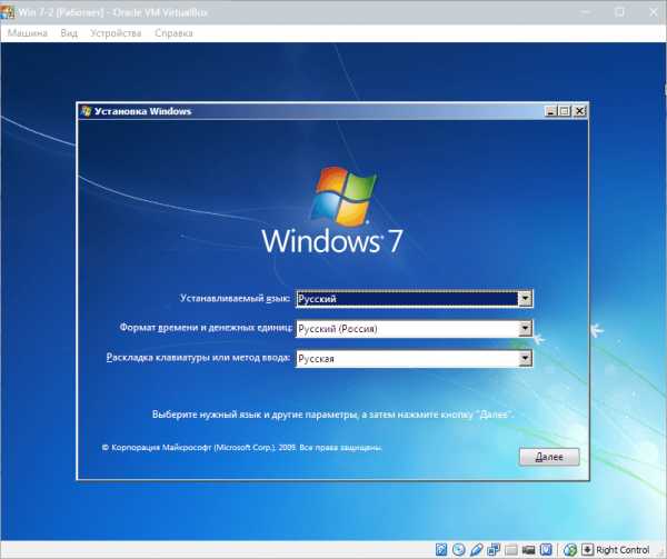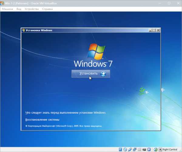 В окне программы Виртуал Бокс начнется процесс установки операционной системы в виртуальную машину. Сам процесс установки системы ничем не отличается от установки системы на обычный компьютер. Пройдите все этапы установки ОС на виртуальный компьютер.