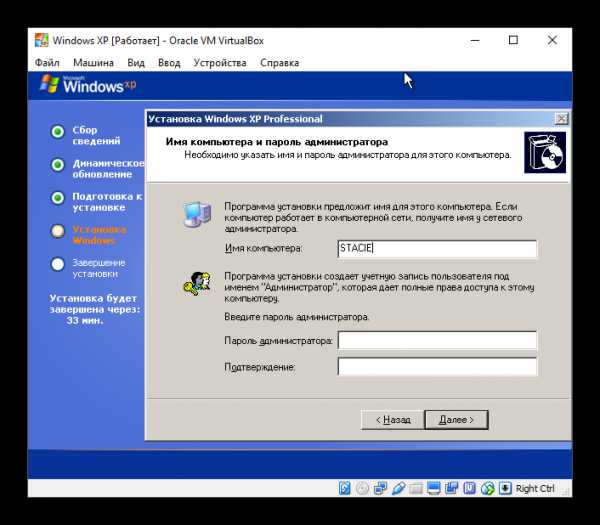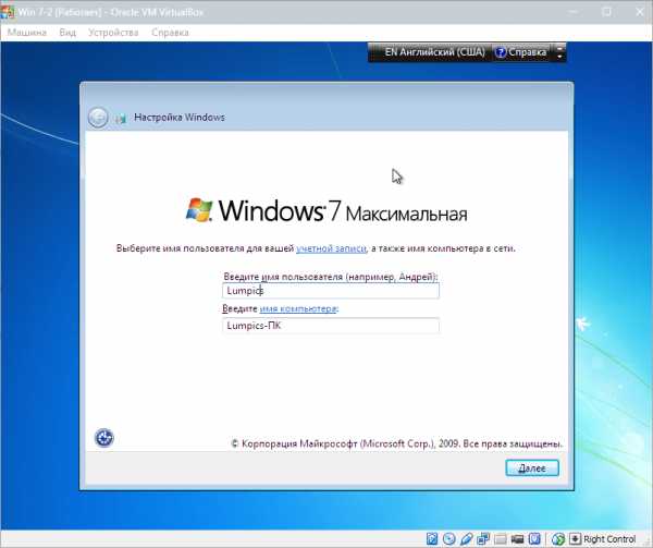 Во время установки машина несколько раз автоматически перезагрузится. После всех перезагрузок вводим желаемое имя пользователя и компьютера.