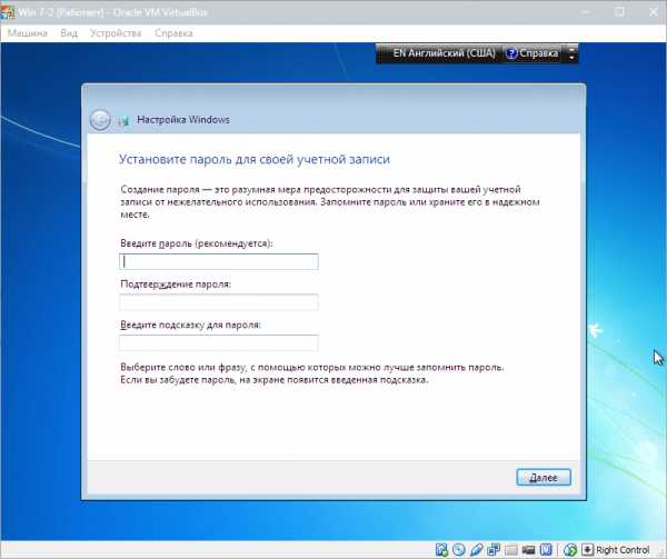 Далее программа установки предложит придумать пароль для Вашей учетной записи.