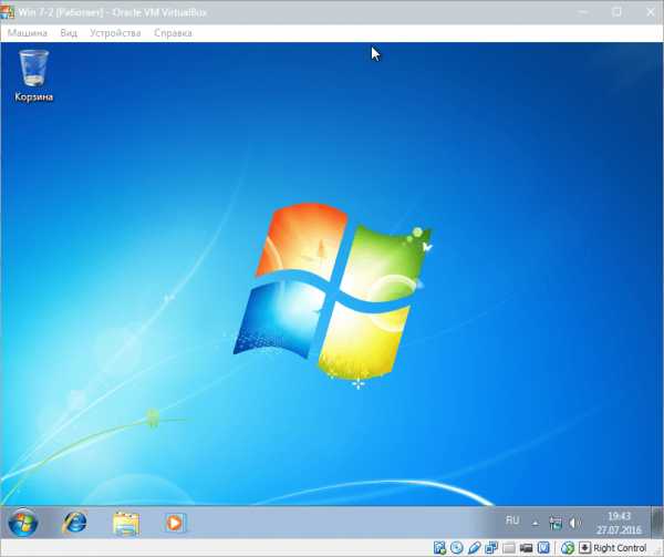 После этих действий виртуалка автоматически перезагрузится и мы попадем на рабочий стол свежеустановленной Windows 7.