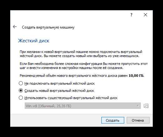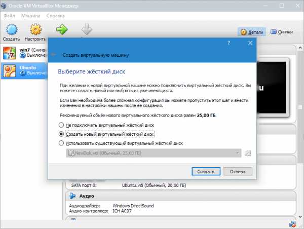После этого создаем виртуальный жесткий диск. Если вы ранее создавали диски, то можно использовать их. Однако в этой же статье мы остановимся на том, как они создаются.