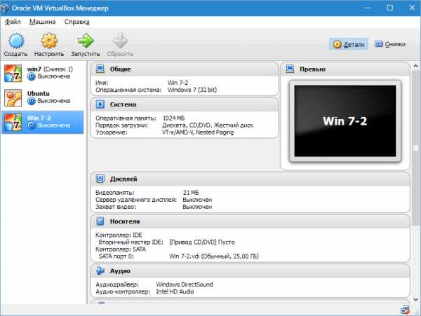 Снимок системы создан, получить к нему доступ можно из главного окна VirtualBox. Только имейте в виду, что снимки системы занимают определенное место на диске гостевой операционной системы.