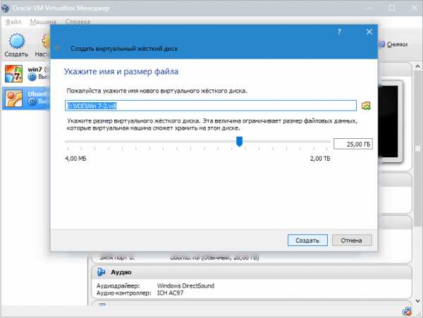 - Завершение процесса – указываем имя и размер виртуального жесткого диска.