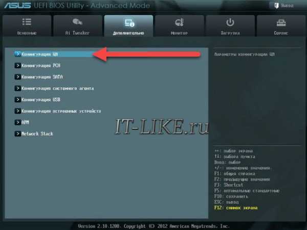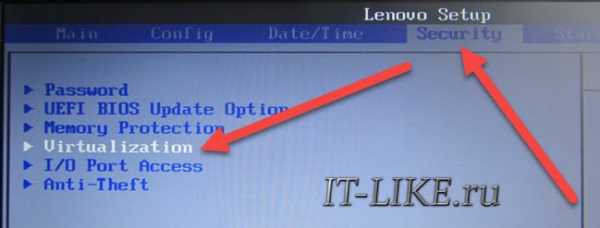 Ищем настройку «Intel Virtualization Technology» и меняем на положение «Вкл.» (On)