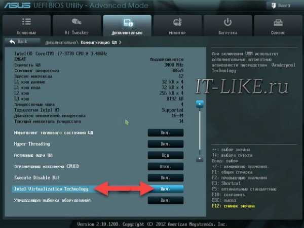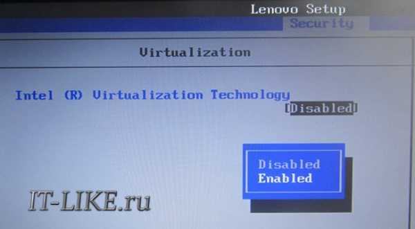 Включаем технологию аппаратной виртуализации в положение «Enabled»