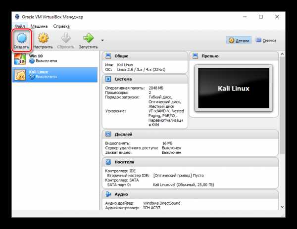 - Запустите VirtualBox Менеджер и нажмите на «Создать».