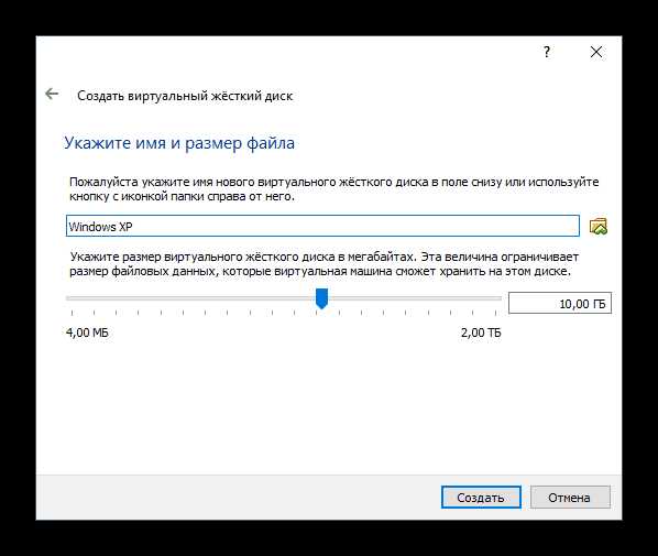 Если на предыдущем шаге вы выбрали вариант «динамический», то Windows XP изначально займет на жестком диске только установочный объем (не более 1,5 ГБ), а затем, по мере ваших действий внутри этой ОС, виртуальный накопитель сможет расшириться максимум до 10 ГБ.