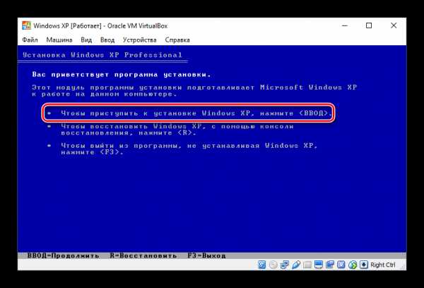 - Вас поприветствует установочная программа и предложит приступить к установке, нажав клавишу «Ввод». Здесь и далее под этой клавишей будет подразумеваться клавиша Enter.