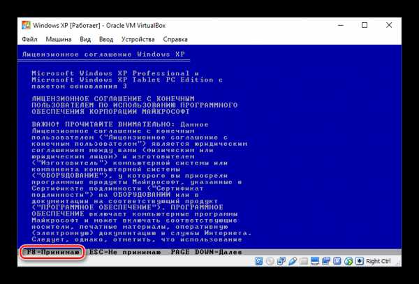 - Откроется лицензионное соглашение, и если вы с ним согласны, то нажмите на клавишу F8, чтобы принять его условия.