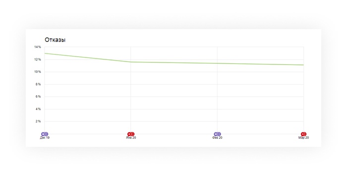 - Высокий процент отказов: доля визитов, продолжавшихся менее 15 сек.
